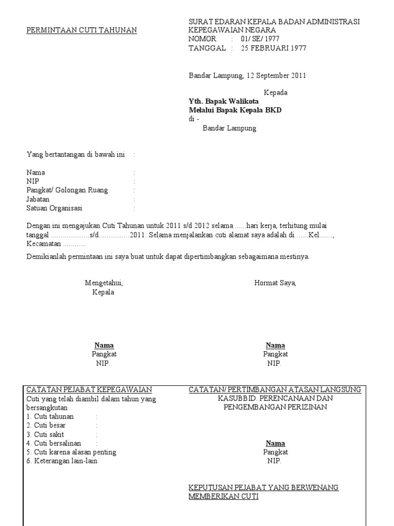 Contoh Surat Permohonan Cuti Kerja Tahunan Pns