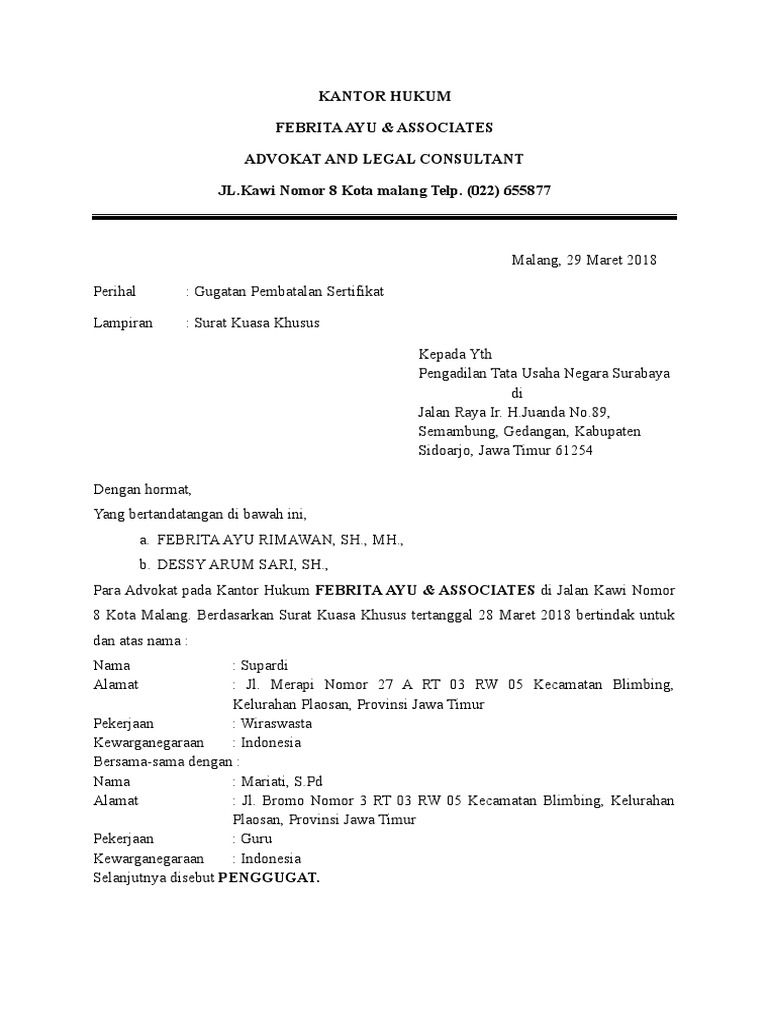 Contoh Surat Gugatan Ptun Archives Doqumen Com