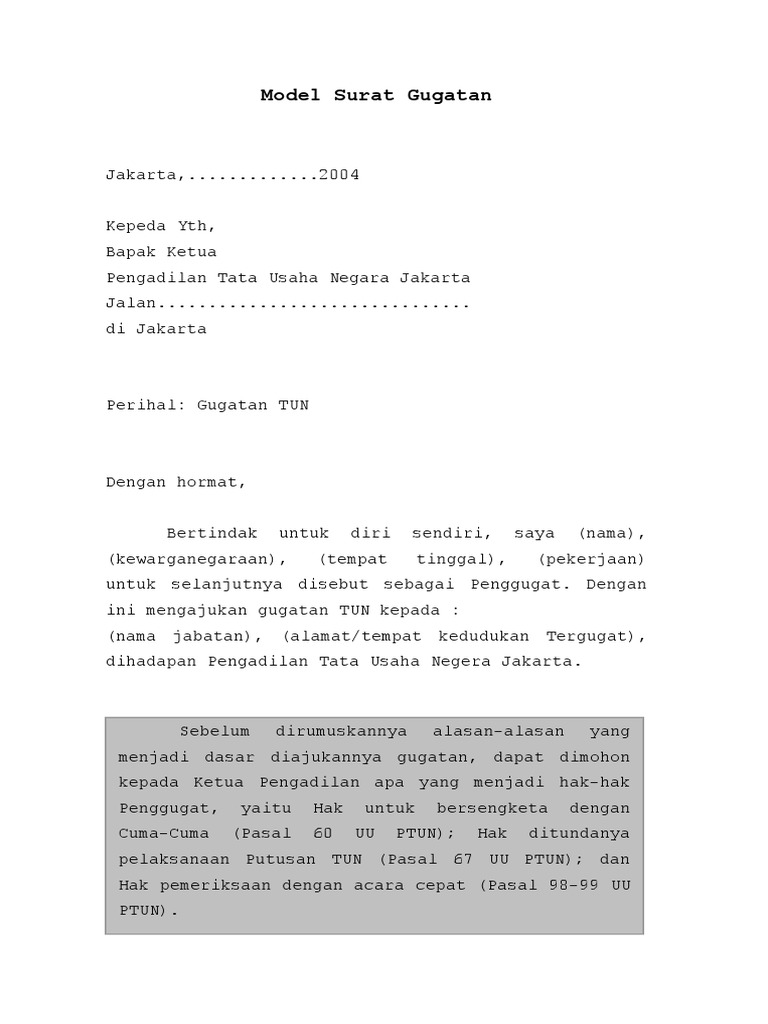 Contoh Surat Gugatan Ke Ptun