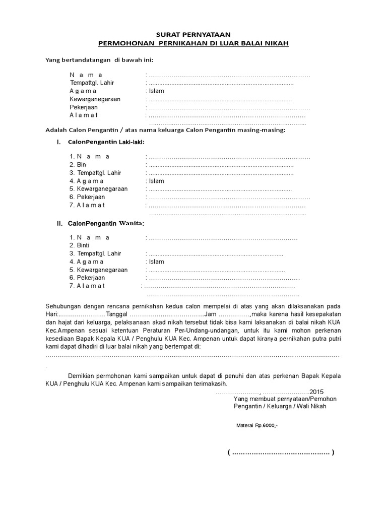 Contoh Surat Keterangan Pengantar Menjadi Wali Nikah