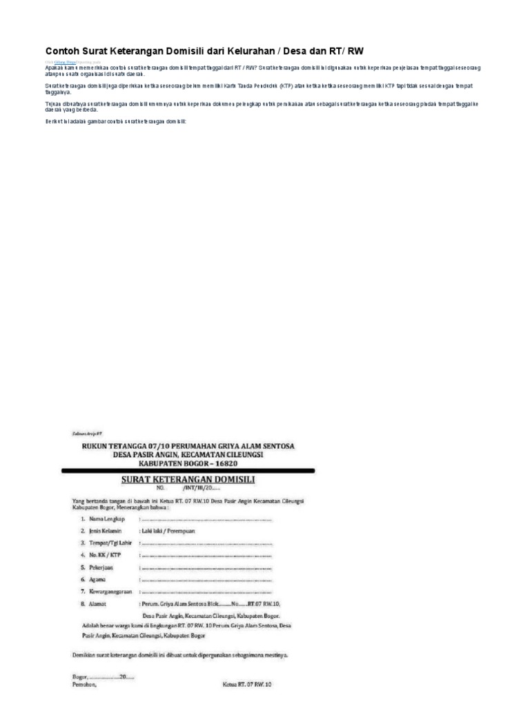 Contoh Surat Keterangan Domisili Dari Rt Rw