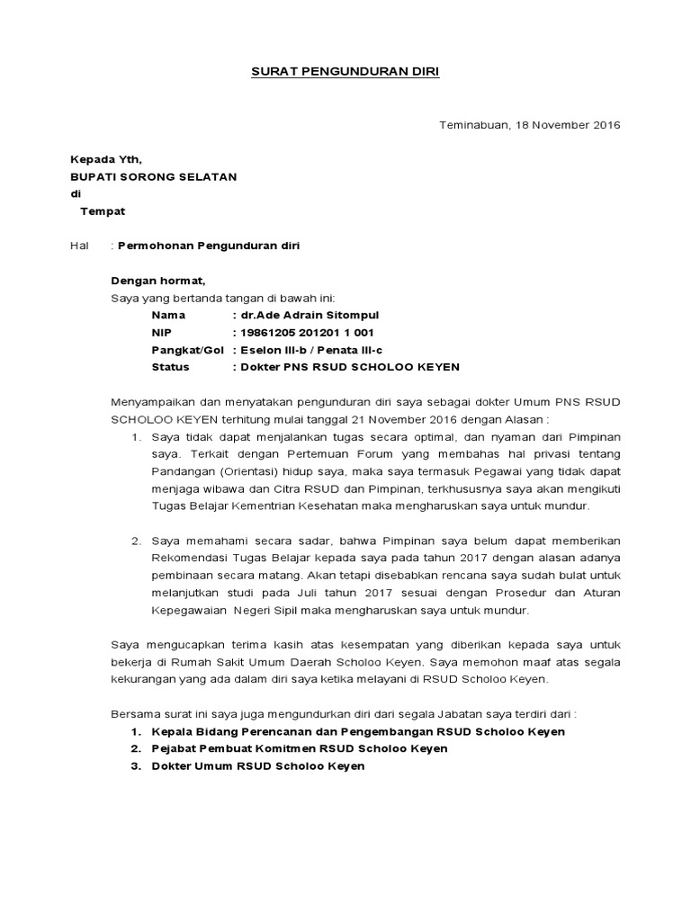 Surat Pengunduran Diri Dokter Pns Ade