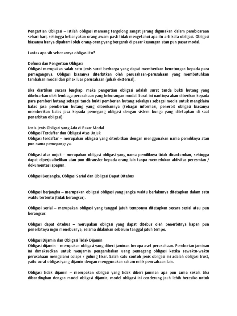Lengkap Pengertian Obligasi Dan Macam Macam Obligasi