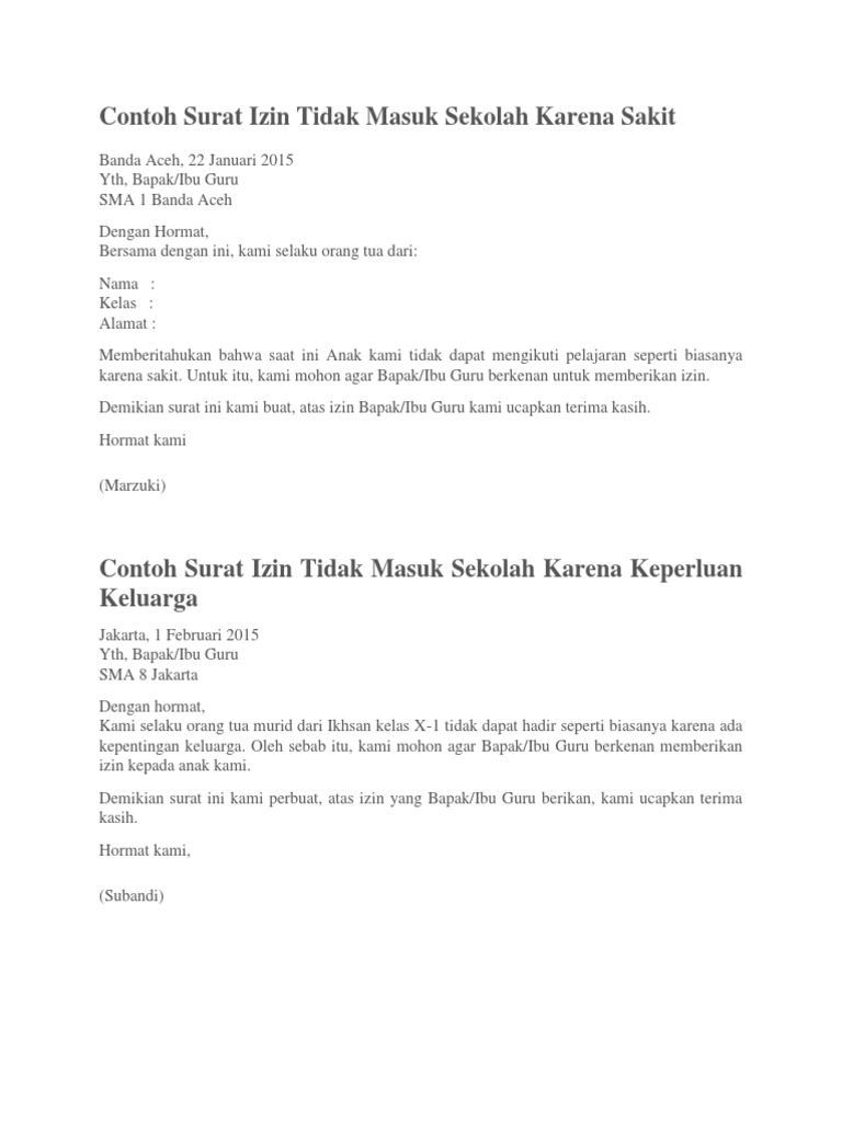 13 Contoh Surat Izin Tidak Masuk Sekolah Kuliah Dan Kerja