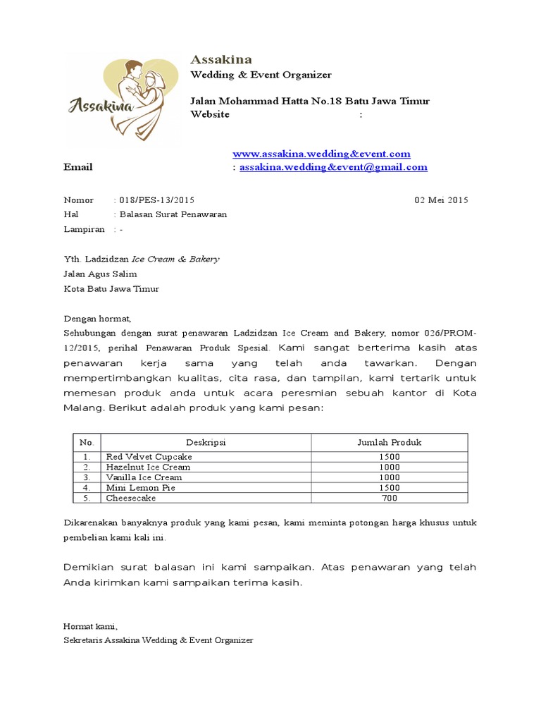 Contoh Surat Balasan Penawaran Wedding Organizer Undangan Me