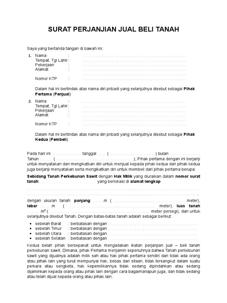 Dalam surat pernyataan jual beli tanah atau akad jual beli tanah ajb anda akan menemukan serangkaian pasal pasal penting. Surat perjanjian jual beli tanah secara umum surat adalah sebuah sarana komunikasi dalam bentuk tulisan tangan atau dalam bentuk ketikan. Namun pada umumnya hal pernyataan pembebanan biaya ini dibebankan pada pihak kedua atau pembeli.
