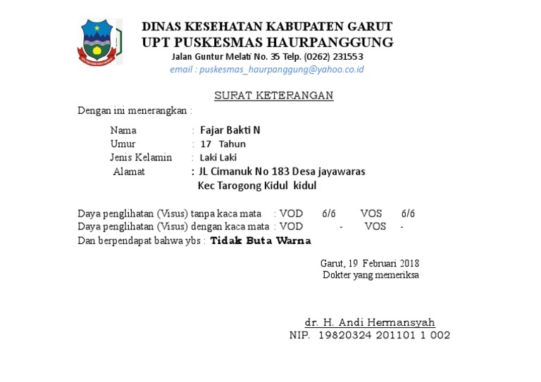 Contoh Surat Keterangan Sehat Ikhwan Muhammad