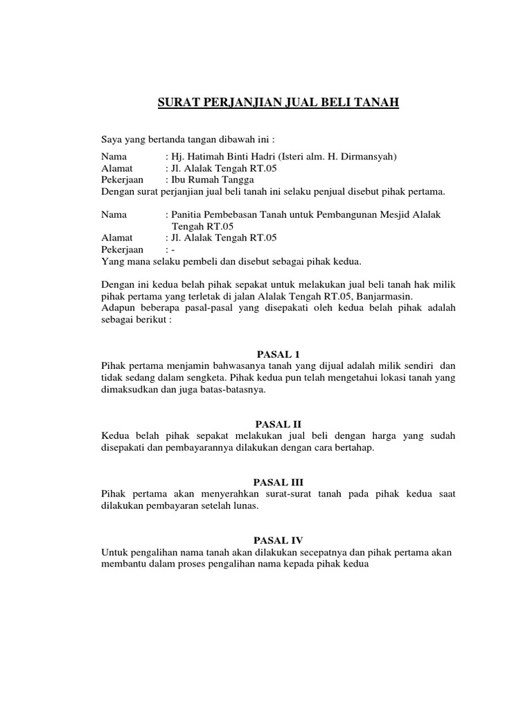 Download 3 Contoh Suart Perjanjian Jual Beli Tanah Doc Terbaru