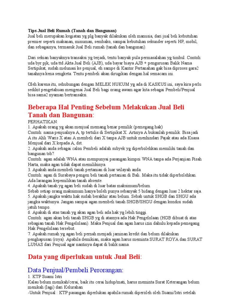 Contoh Surat Perjanjian Jual Beli Rumah Pdf Doc Lamudi