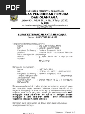 Surat Keterangan Aktif Mengajar 1 Docx Document
