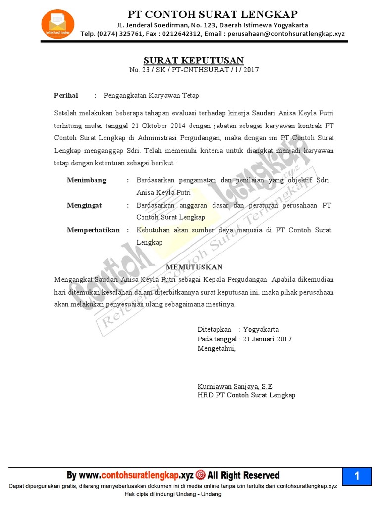 Contoh Surat Keputusan Pengangkatan Karyawan Tetap Ruangguru Co Id