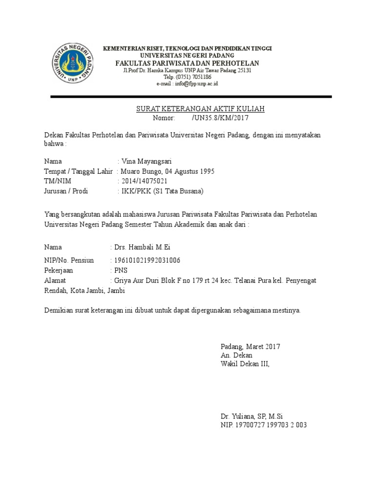 Contoh Surat Aktif Kuliah Unp