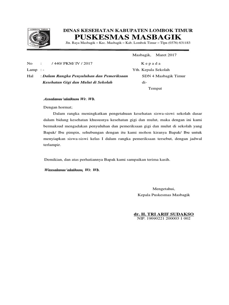 Surat Ukgsdinas Kesehatan Kabupaten Lombok Timur