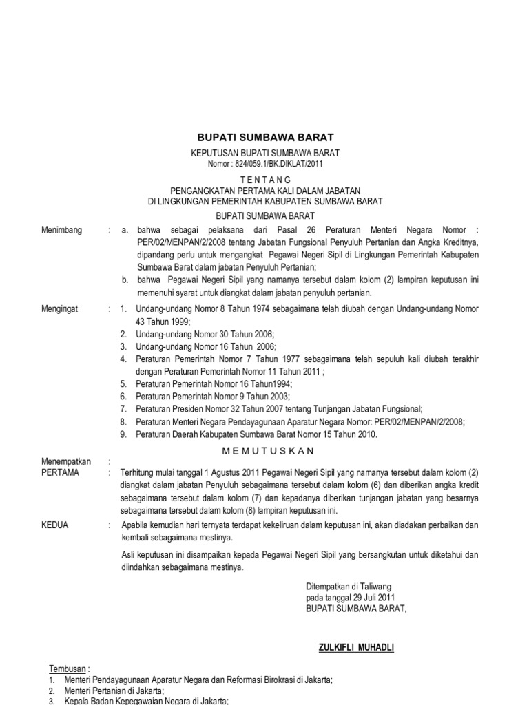 Contoh Surat Keputusan Pengangkatan Jabatan Pns