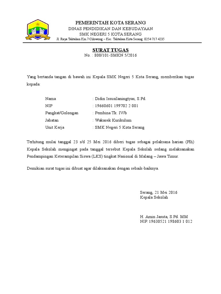 18 Contoh Surat Tugas Karyawan Guru Siswa Pns Perusahaan