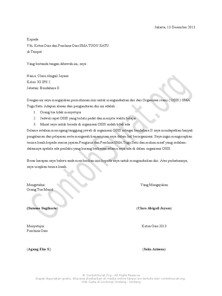 Contoh Surat Pengunduran Diri Osis Our Families Journey