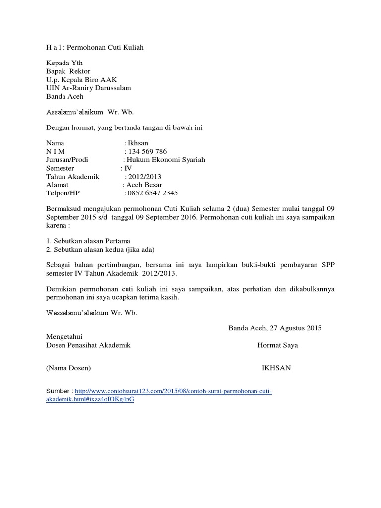 Contoh Surat Permohonan Izin Cuti Kuliah Berbagai Keperluan