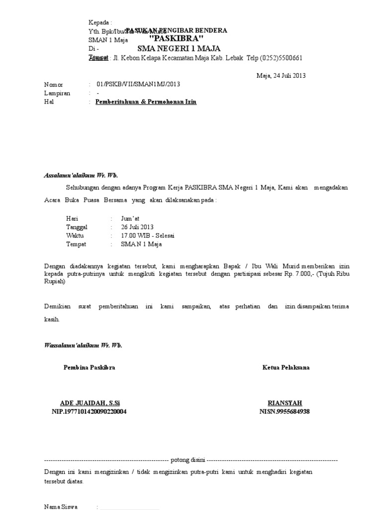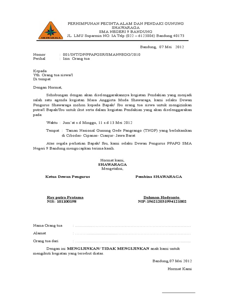 Contoh Surat Izin Orang Tua Untuk Kegiatan Lomba Didno76 Com