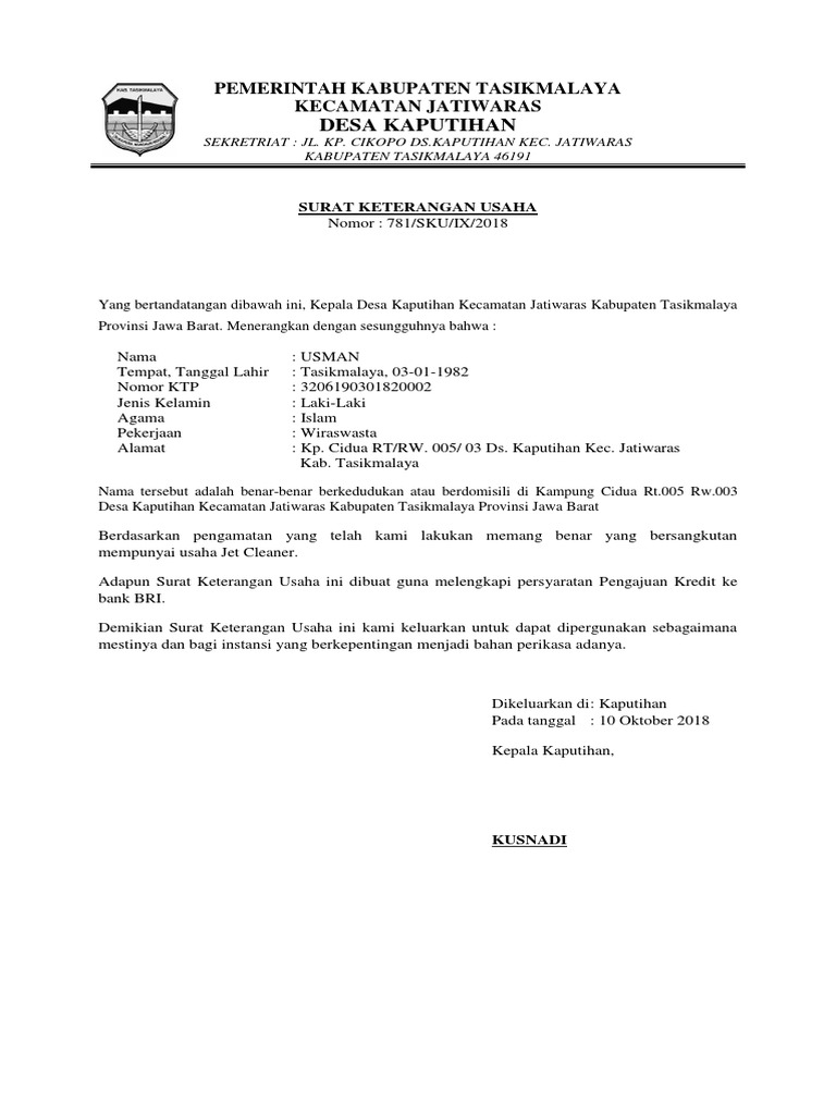 Contoh Surat Keterangan Usaha Dari Rt