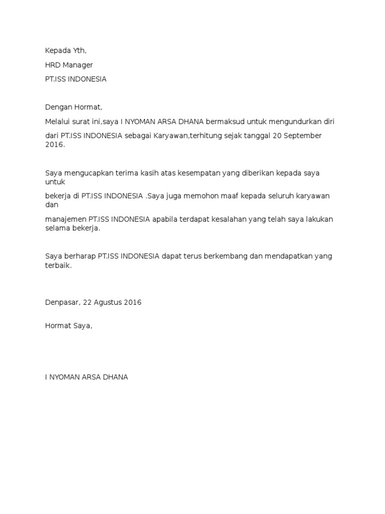 Doc Contoh Surat Resign Sandy Septiansyah Academia Edu