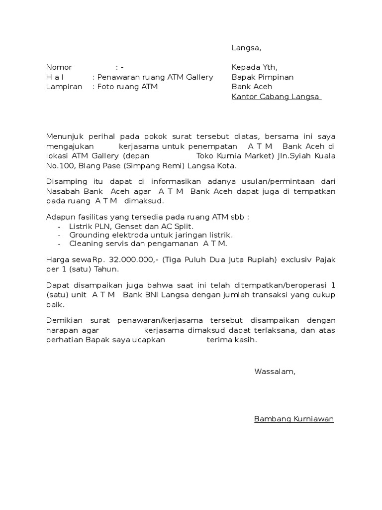 Contoh Surat Penawaran Kerja Sama Penyaluran Produk File Word