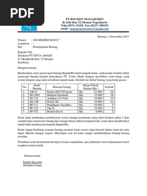 Contoh Surat Permintaan Barang