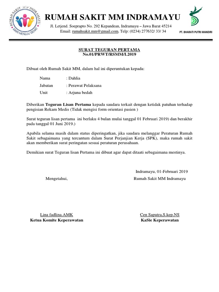 Contoh Surat Peringatan Teguran Karyawan Perusahaan Sekolah Dll