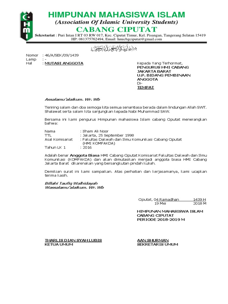 Contoh Surat Mutasi