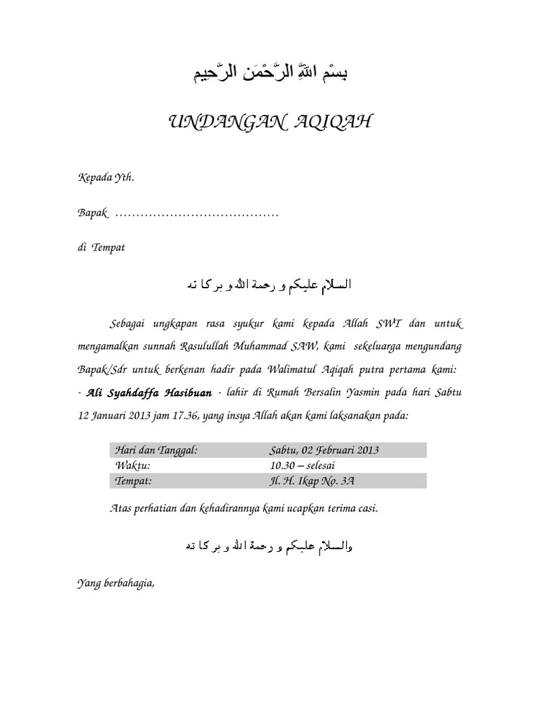Contoh Surat Undangan Aqiqah Sederhana