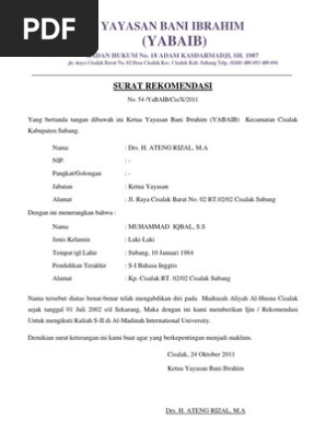 11 Contoh Surat Rekomendasi Yang Lengkap Dan Terbaru