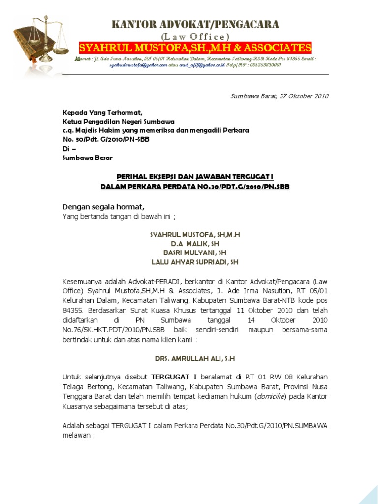 Contoh Surat Gugatan Perlawanan Perkara Perdata Docx Contoh