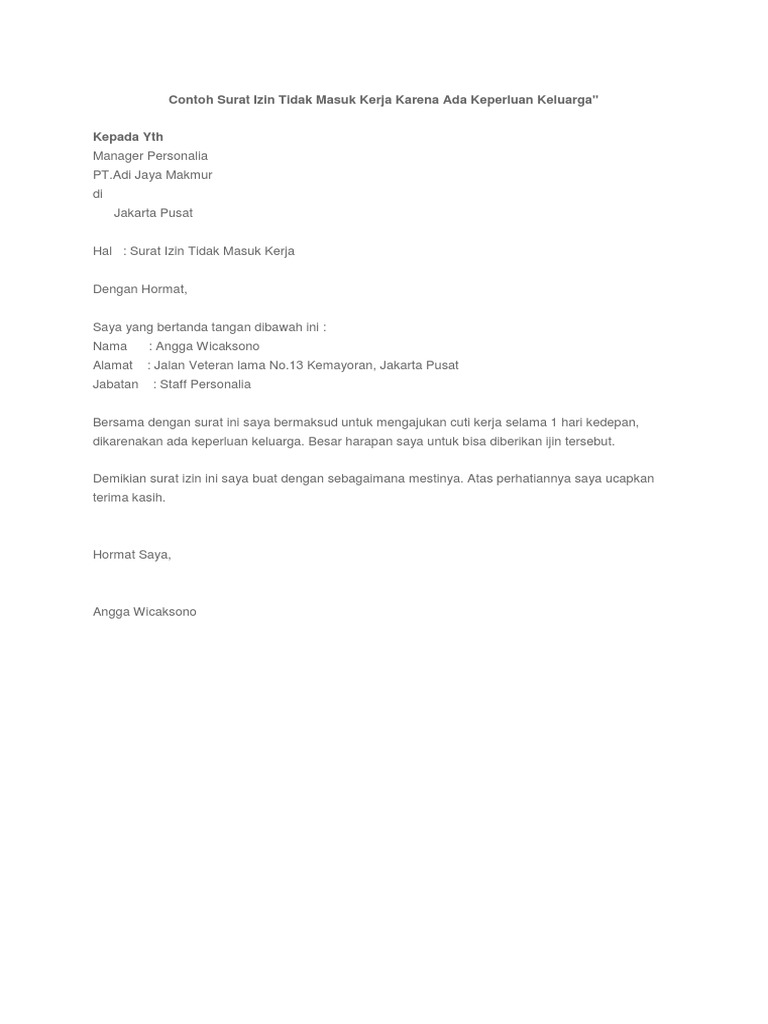 Contoh Surat Izin Tidak Masuk Kerja Karena Ada Keperluan Keluarga
