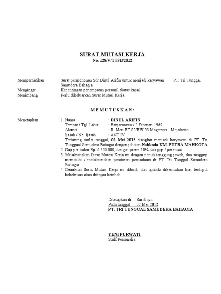 Contoh Surat Mutasi Karyawan Doqumen Com