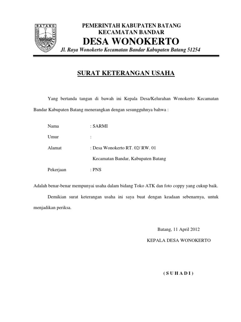 Contoh Surat Keterangan Usaha Sku Resmi Terlengkap