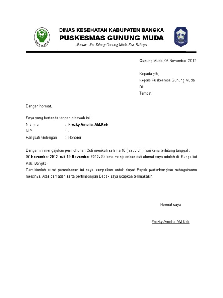 Format Surat Contoh Surat Izin Cuti Menikah Untuk Karyawan