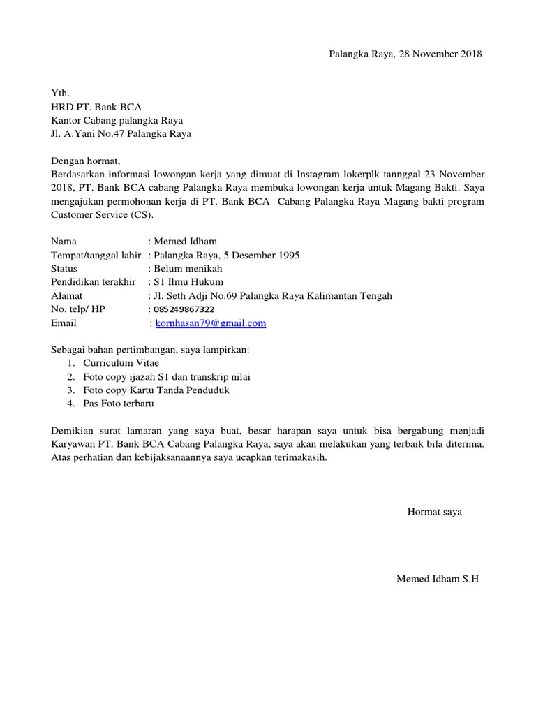 Contoh Surat Lamaran Kerja Bank Bni Yang Baik Dan Benar Resmi