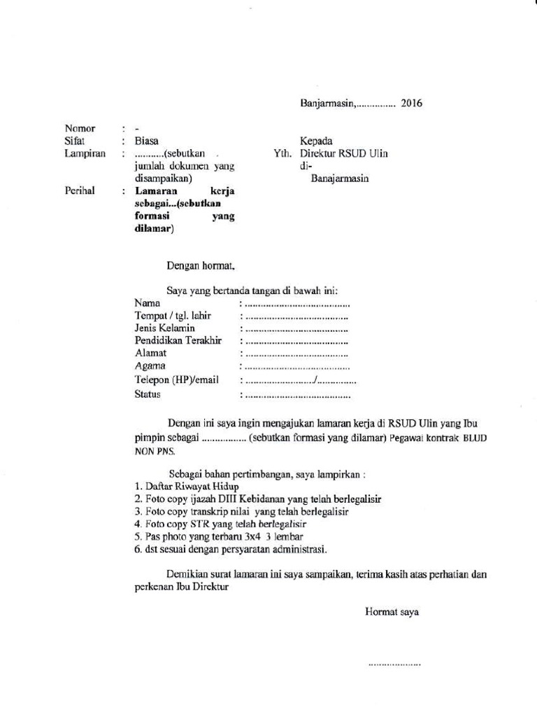 Contoh Surat Lamaran Rsud Ulin