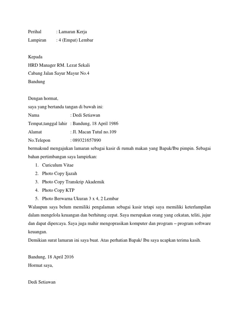 Contoh Surat Lamaran Di Restoran Sebagai Kasir 3