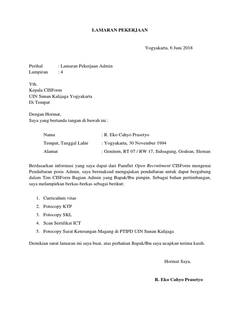 Surat Lamaran Admin