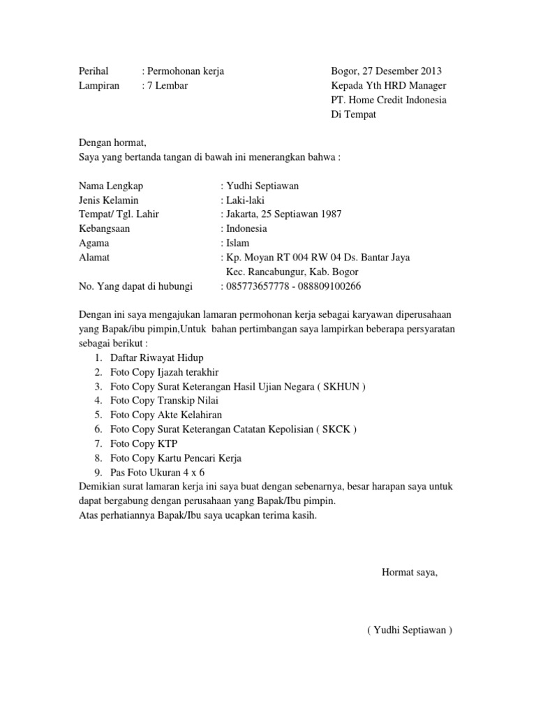 Karyawan Contoh Surat Lamaran Kerja Di Pt