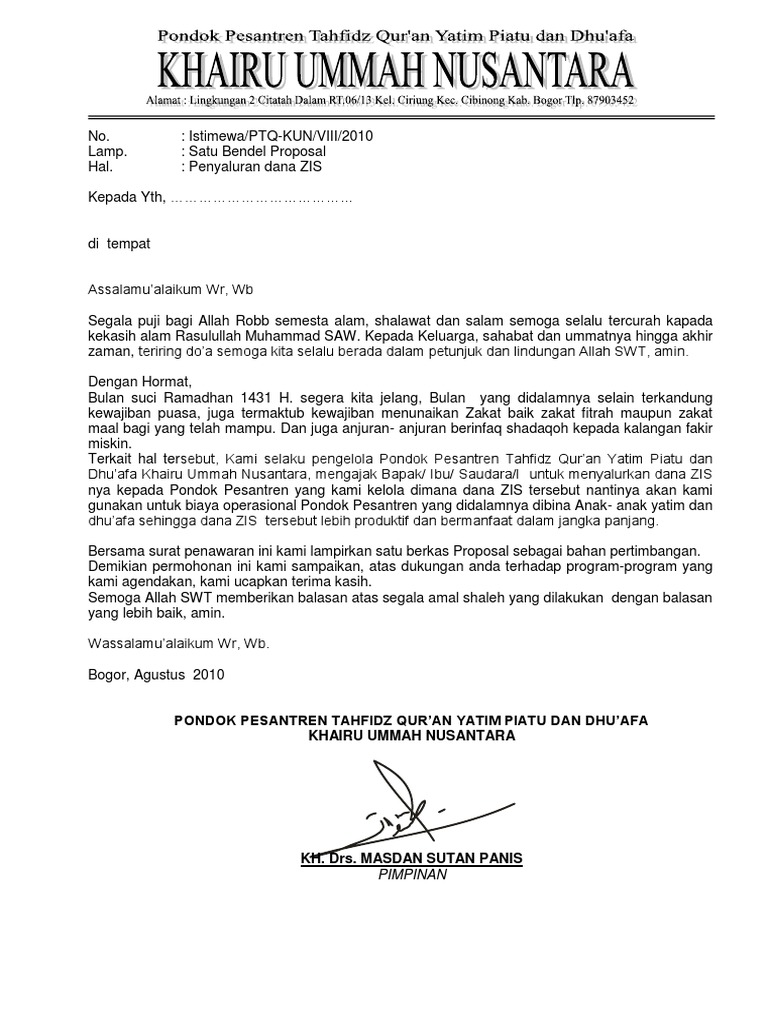 Contoh Surat Permohonan Zakat Infaq Dan Shodaqoh